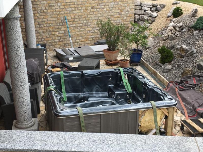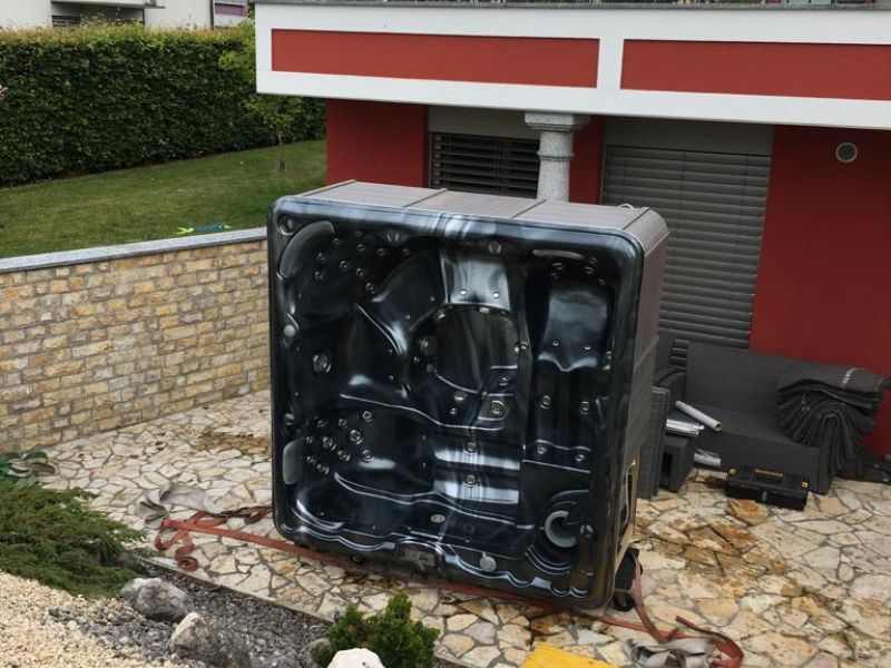 Manutention spéciale et levage d’un jacuzzi pour un client privé.