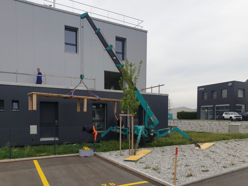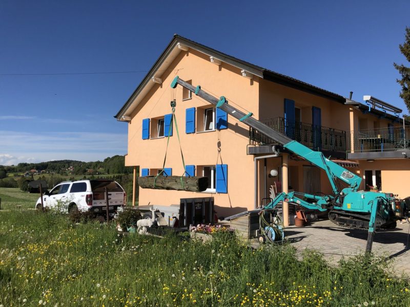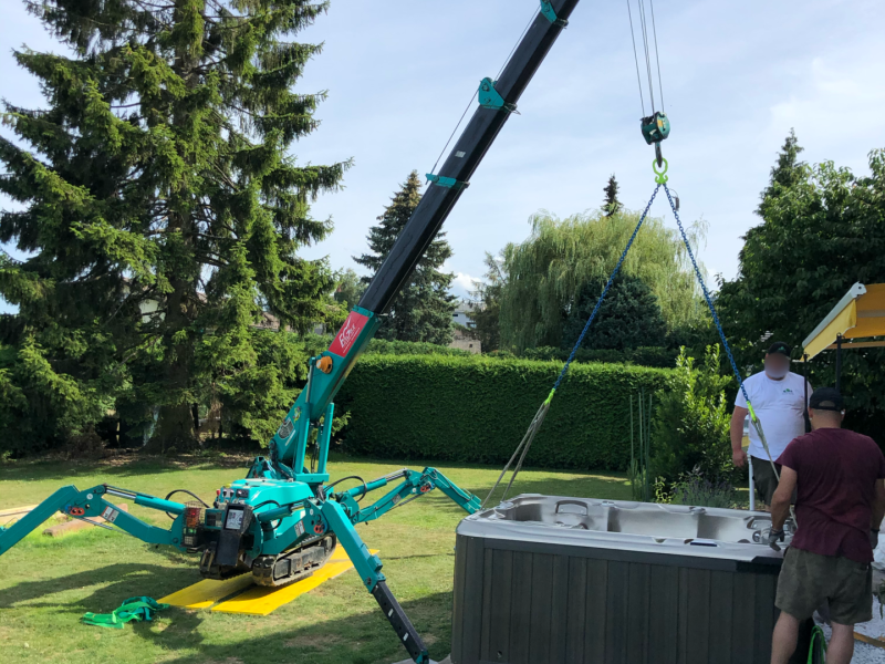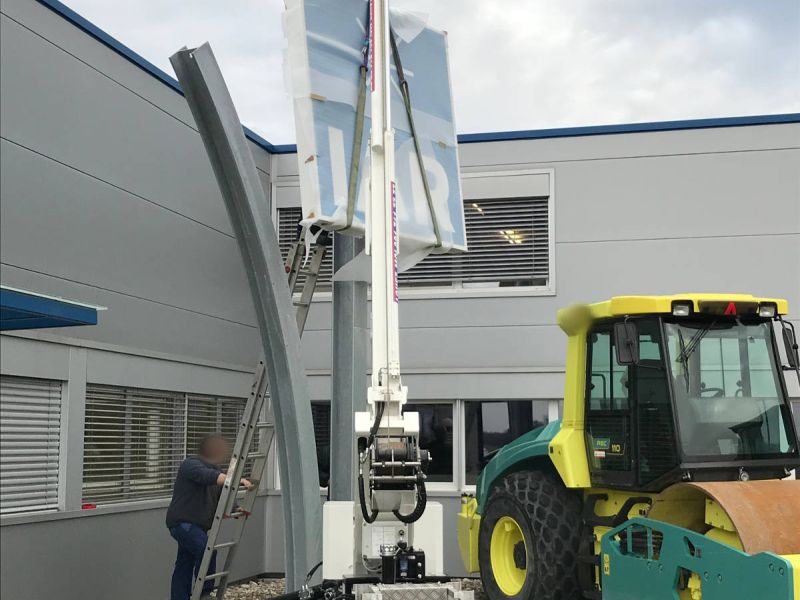 Pour un client publicitaire, levage et mise en place d’un totem publicitaire. Notre mini-grue fut un outil de levage parfait pour cette manutention ordinaire.